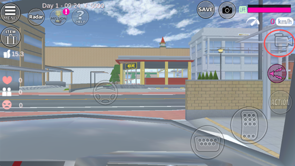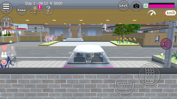 6、游戏玩法很自由,在游戏中你可以做任何事情,比如我们前往小汽车旁,点击ACTION;