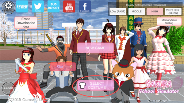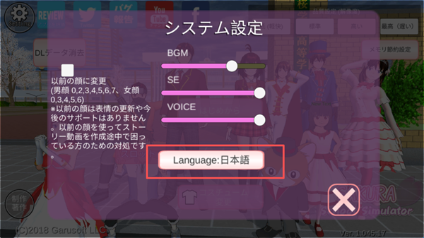 注意事项:此版本仅支持英文和日文两种语言,在游戏左上角选择【Setting】即可设置。若需要中文语言,请下载樱花校园模拟器中文版本畅玩!