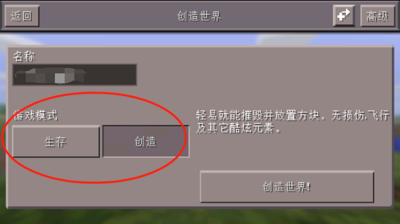 4、选择生存还是创造模式,选择完毕后点击创造世界