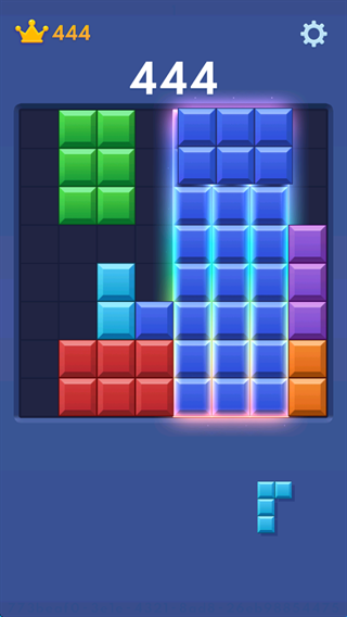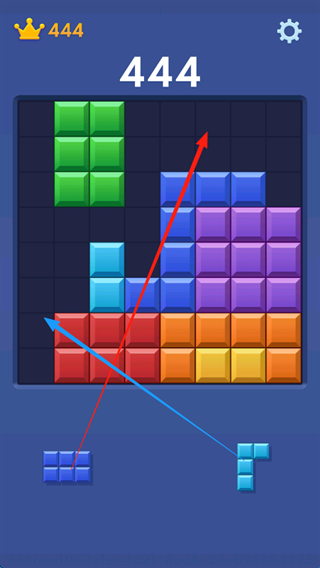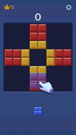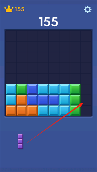 3、拖动方块移动它们,尝试让它们全部在行和列中正好放满。然后方块会消失,你就得分了。