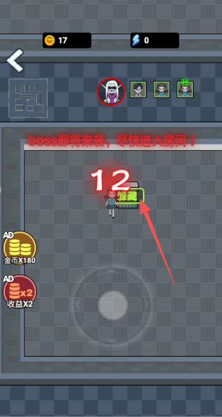 3、我们需要在时间之内去找到一个房间躲藏起来,然后boss就会开始抓捕。