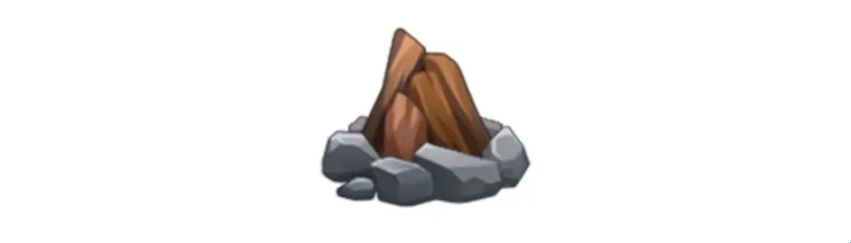 首先我们来认识新道具:篝火,制作篝火非常简单,只需要果木和岩石块即可,篝火需要配合我们熟悉的生肉和火把使用。
