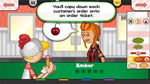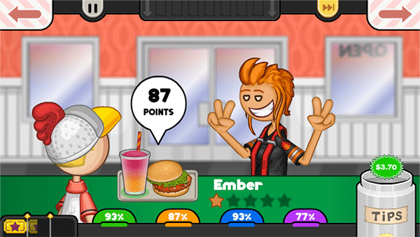 9、做完后,把餐点给顾客,顾客会给你评分,分越高获得的金币越高
