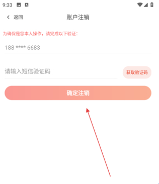 5、在验证页面,获取并输入短信验证码,点击确定注销,即可提交东方购物账号的注销申请。