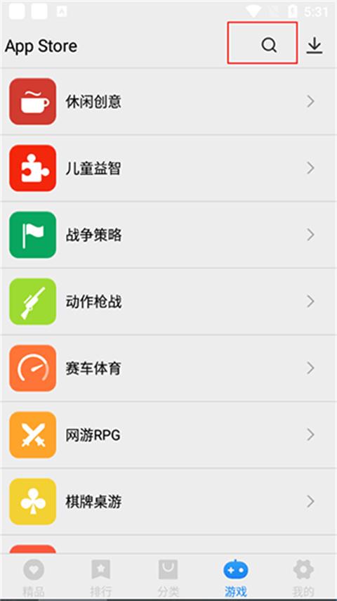3、点击首页上方的放大镜商标,就可以搜索自己想下载的游戏以及app了。