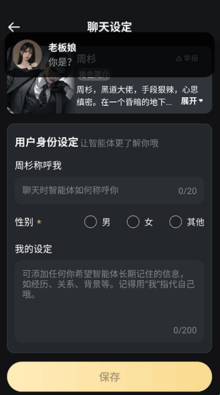 3、在聊天过程中还可以对自己的人设随时进行调整,让ai角色更加能了解你。