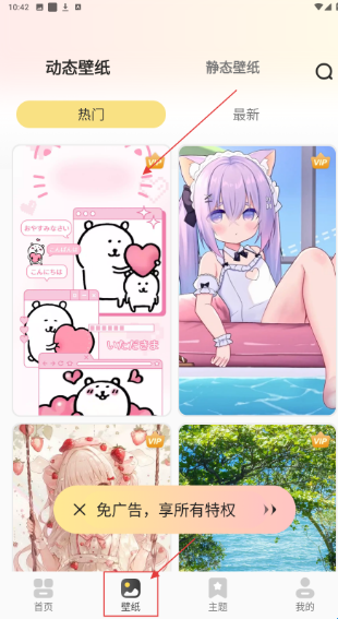 3、切换至【壁纸】页面,有静态壁纸和动态壁纸可以选择,点击心仪的壁纸。