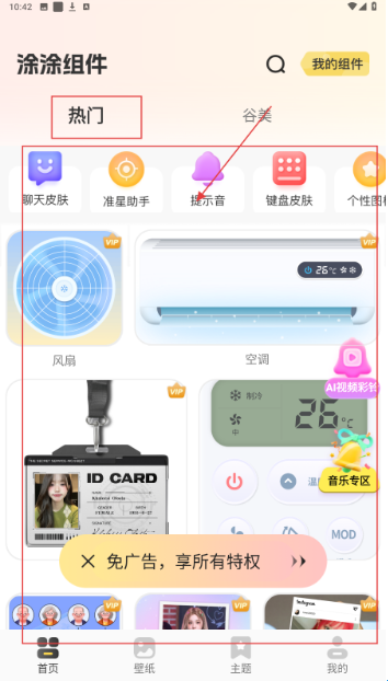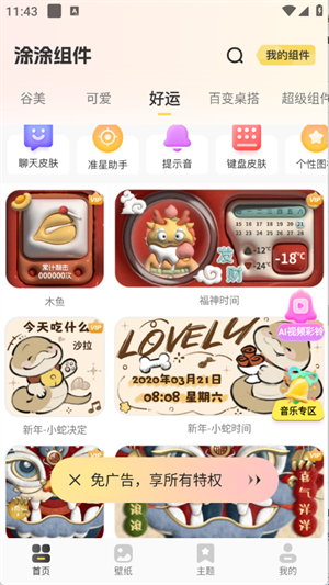 涂个组件是一款专门美化桌面打造的一款应用,软件汇集非常多的小功能包含相册、倒计时、日历、天气等等,用户可以给它们随心打扮,让你的手机桌面变得更加美观。在设置之前可以在APP上面预览壁纸,查看壁纸与手机屏幕的适配度,还可以在里面挑选键盘皮肤,打字的时候非常炫酷,智能推荐你可能喜欢壁纸。