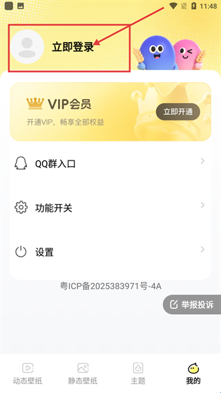 3、在个人中心页面,点击【立即登录】,可进入登录界面。