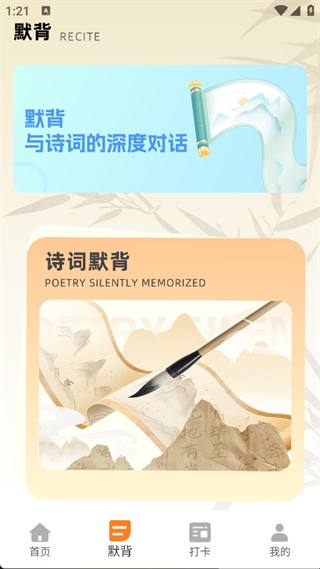 3、点击页面下方的‘默背’,即可打开诗词默背功能。