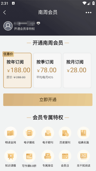 2、南周会员专区:提供电子报刊、发现人文好课等会员服务,满足用户的多元化需求。
