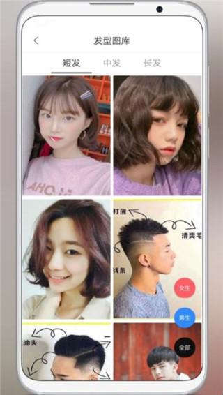 3、发型图库:测脸型的发型图库功能有上百款发型图片,不管是男生发型、女生发型、短发发型还是长发发型都应有尽有。