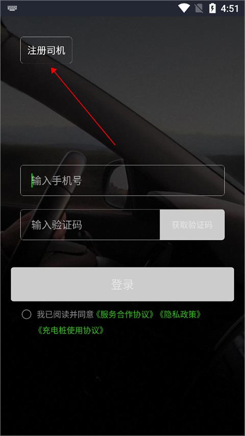 1、用户打开软件后,在进入的页面中点击左上角的【注册司机】