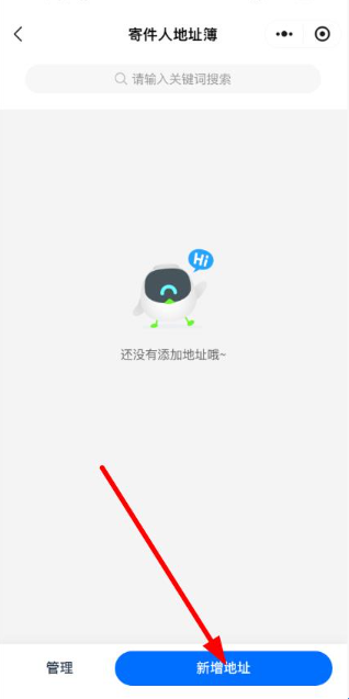 2、在寄件界面,若未添加寄件地址,点击新增地址,填写寄件人相关信息完成地址添加。