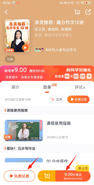 3、进入试看一节后觉得不错可以返回上一页点击购买下单。
