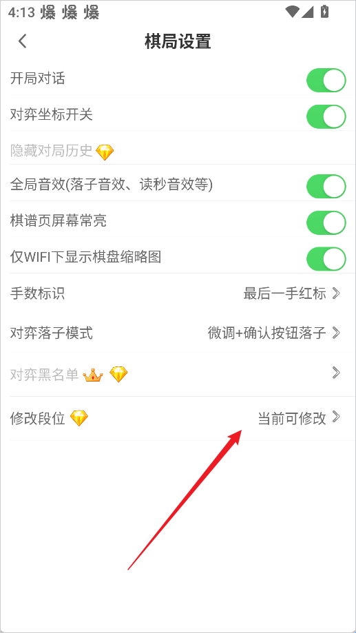 3、进入设置后,找到【修改段位】选项,点击即可进入段位调整界面。
